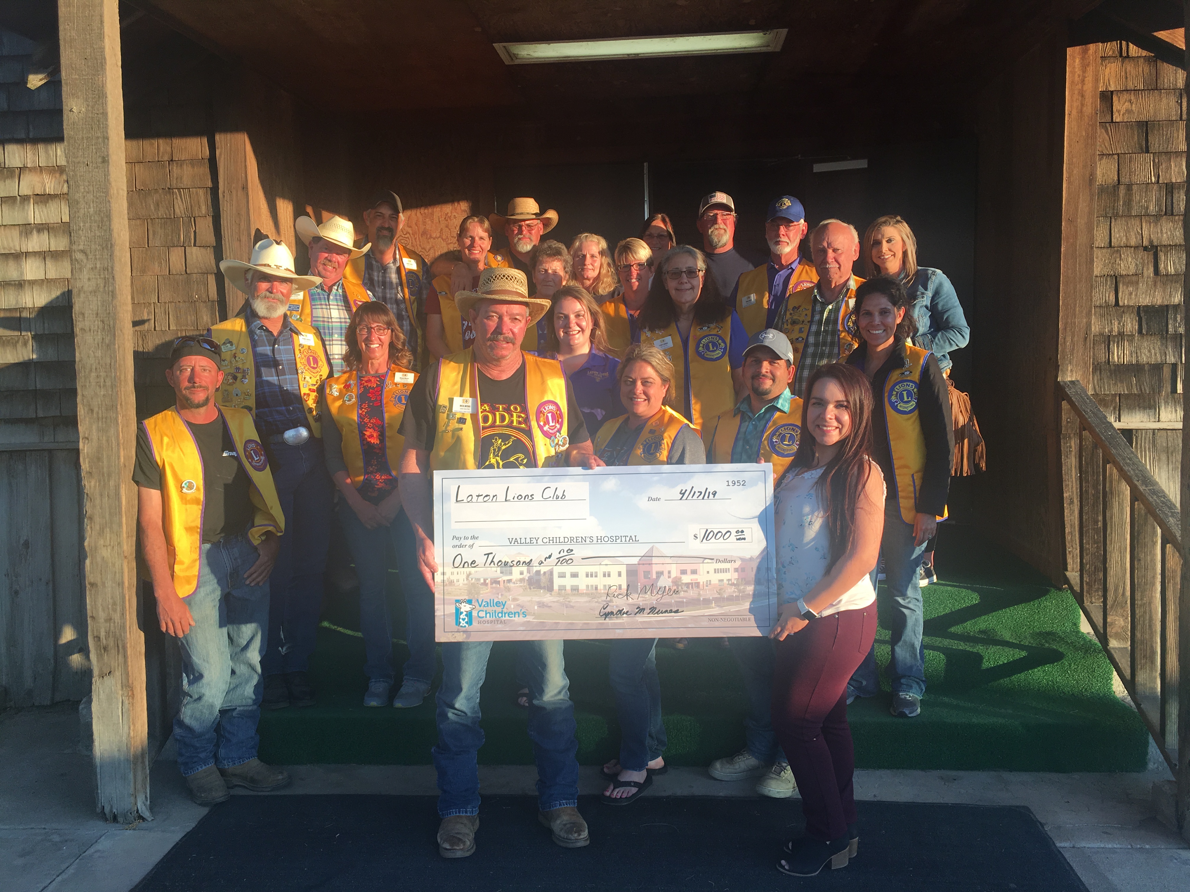 The Laton Lions Club bull riding event in August 2017 was a great event and the club donated $1,000.00 to Valley Children’s hospital. Our president Rick Myers presented the check to Valley Children’s Healthcare.